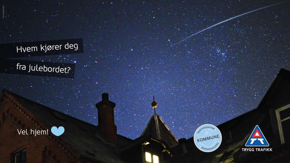 Månedens trafikksikkerhetsplakat - desember Kvinesdal kommune er gjennom Trygg Trafikk godkjent som en Trafikksikker kommune. Å bli godkjent betyr ikke at det ikke skjer trafikkulykker, men godk... Publisert 01.12.2025 kl. 15.02