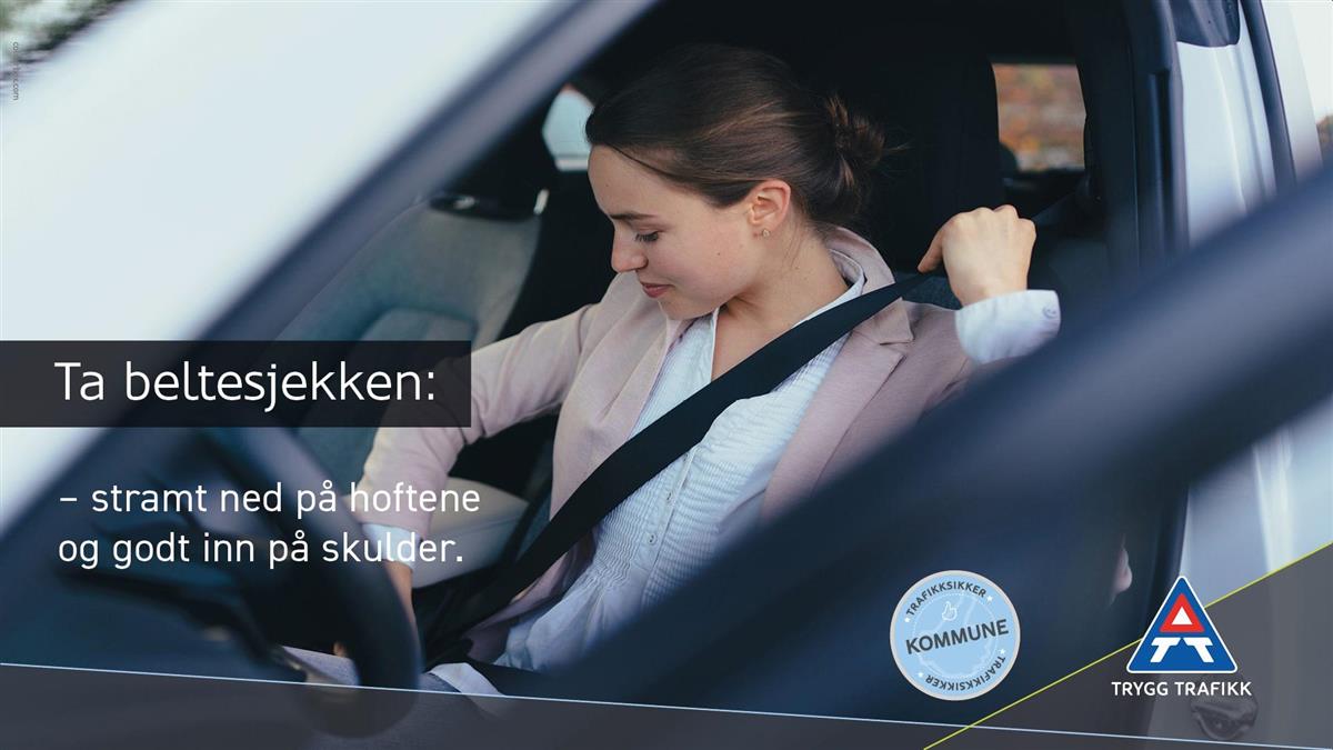 Ta beltesjekken: - stramt ned på hoftene og godt inn på skulder.