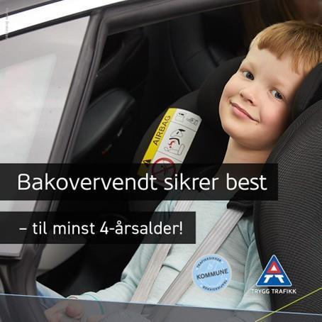 - når barnet sitter bakovervendt, blir kroppen og hodet presset mot seteryggen ved en frontkollisjon. Kreftene blir derfor fordelt over en større flate slik at belastningen blir mindre for hode og nakke
